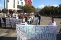 Medical students protesting in front of the Ministry of Education. They have gathered near the Faculty of Medicine to then march along Dibra Street and stop in front of the Ministry of Education where they have opposed the law that forces them to work for 3-5 years in their country after completing their studies or pay full school fee. The students have refused the fee of 240,000 lek if they do not refuse the work contract for 2-5 years in Albania.