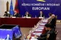 Chairperson of the National Council for European Integration, Jorida Tabaku and the head of SPAK, Altin Dumani speaking during a meeting of the National Council of European Integration, where Albania's challenges for integration and recommendations of the European Commission for the justice system.