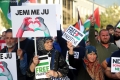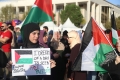 PROTESTS FOR PALESTINE - The Muslim community of Albania and a group of citizens holding banners and Albanian and Palestinian flags during a protest in Skanderbeg square in Tirana, against Israel's bombing of Gaza. With banners in their hands, which read We are with you, Free Palestine or Stop the bombing in Gaza, they demanded a stop to the bombing of civilians and hospitals.