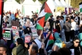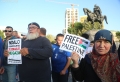 The Muslim community of Albania and a group of citizens holding banners and Albanian and Palestinian flags during a protest in Skanderbeg square in Tirana, against Israel's bombing of Gaza. With banners in their hands, which read We are with you, Free Palestine or Stop the bombing in Gaza, they demanded a stop to the bombing of civilians and hospitals.
