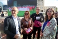 The Dutch ambassador to Tirana, Reinout Vos, MP Jorida Tabaku and the Chargé d'Affaires of the European Union in Tirana, Ambassador Luigi Soreca during an activity in Tirana as part of Pink October, to raise awareness on the importance of early breast cancer diagnosis.