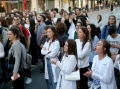 Students of the Faculty of Medicine protesting in front of the Ministry of Education. The students reject the law that forces them to work for 3-5 years in their country after completing their studies or to pay the full school fee. The students have refused the fee of 240,000 lek if they do not refuse the work contract for 2-5 years in Albania.