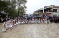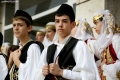 Children in traditional clothes during the inauguration ceremony of the bust of former Greek Prime Minister Konstantinos Mitsotakis in Dervican in Dropulli, while the square was also named after him. Mitsotakis is honored as the first Greek prime minister who visited Albania in 1990, on the eve of the fall of the communist dictatorship.