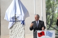 Dimitris Avramopoulos speaking during the inauguration ceremony of the bust of former Greek Prime Minister Konstantinos Mitsotakis in Dervican in Dropulli, while the square was also named after him. Mitsotakis is honored as the first Greek prime minister who visited Albania in 1990, on the eve of the fall of the communist dictatorship.