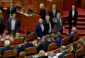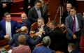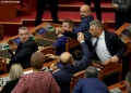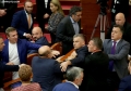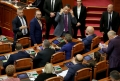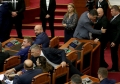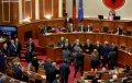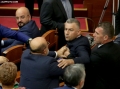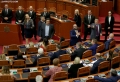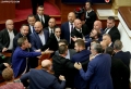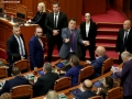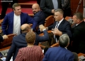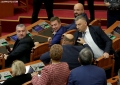 Opposition MPs in a moment of tension during a parliamentary session. The session was interrupted while there were many debates between the MPs of the majority and the opposition, while the MP Nallbati tried to hit the MP Sina. The majority has rejected the request of the opposition MPs to set up an investigation commission.