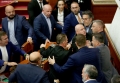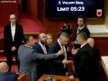 MPs Bledjon Nabllbati, Vullnet Sina in a moment of tension during a parliamentary session. The session was interrupted while there were many debates between the deputies of the majority and the opposition, while the MP Nallbati tried to hit the MP Sina. The majority has rejected the request of the opposition MPs to set up an investigation commission.