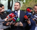 MP Ervin Salianji speaking for journalists after a tense parliament session. The opposition MPs have gathered the chairs of their socialist colleagues around the podium, not allowing them to sit down, as a sign of protest since the majority MPs have not approved the establishment of the investigative commissions they requested. Salianji said that the action of the opposition will be escalated.