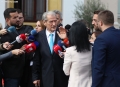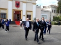 Former Prime Minister, Sali Berisha leaving after speaking to journalists after a tense parliament session. The opposition MPs have gathered the chairs of their socialist colleagues around the podium, not allowing them to sit down, as a sign of protest since the majority MPs have not approved the establishment of the investigative commissions they requested. Berisha has warned about hunger strikes.