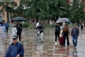 Citizens with umbrellas in their hands in Skenderbeg Square, while the roads were flooded by heavy rains in Tirana, creating heavy traffic. Albania has been affected by the storm Ciaran which has hit Europe and in Italy it has caused several victims and great material damage. As a result of the heavy rains, traffic has been blocked on some road axes, while water has entered some homes and businesses.