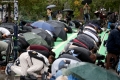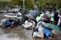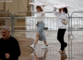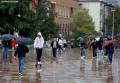 Citizens praying with umbrellas in their hands during a rainy day, while the roads are flooded by heavy rains in Tirana, creating heavy traffic. Albania has been affected by the storm Ciaran which has hit Europe and in Italy it has caused several victims and great material damage. As a result of the heavy rains, traffic has been blocked on some road axes, while water has entered some homes and businesses.