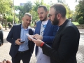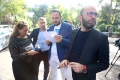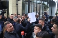 MP Gazment Bardhi speaking at the door of the Presidency of the Parliament. Some of the MPs of the democratic party were expelled from the Secretariat of Ethics after the tensions created during the last parliamentary session and the door has been closed. The MPs chose to enter by force through the windows or by crossing the railings.