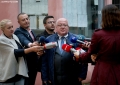 Former Prime Minister Sali Berisha's lawyer, Genc Gjokutaj speaking for journalists after a session of the Special Court regarding the Partizani complex affair. Gjokutaj has filed the request for the dismissal of judge Irena Gjoka.