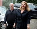 Contructor Fatmir Bektashi and laywer Vasilika Hysi entering a session of the Special Court (GJKKO) to give his explanations regarding the privatization of the former Partizani sports complex. Bektashi is subject to the obligation to appear and prohibition to leave the country.
