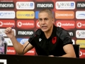 The coach of the Albanian national football team, Sylvinho speaking at a press conference before the two remaining valid matches for the European 2024 qualifiers with the national teams of Moldova and the Faroe Islands.