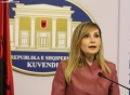MP Jorida Tabaku speaking at a press conference from the headquarters of the parliament. She spoke about the progress of the report for Albania, emphasizing that our country continues to have profound problems in 15 main areas.