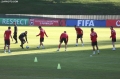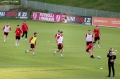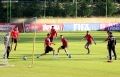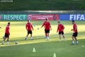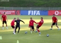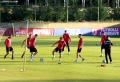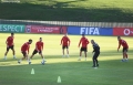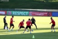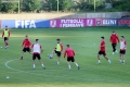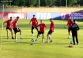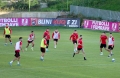Players of the Albanian national football team during a training session before the two remaining valid matches for the European 2024 qualifiers with the national teams of Moldova and the Faroe Islands, in the fields of the House of Football.