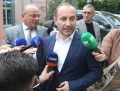 The mayor of Kucove, Kreshnik Hajdari speaking to journalists after leaving the offices of SPAK. Hajdari is accused of hiding a conviction in Greece in the decriminalization form.