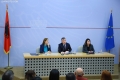The Minister of Health and Social Welfare, Albana Kociu, the Minister of the Interior, Taulant Balla and the Minister of Tourism and Environment, Mirela Kumbaro entering during a press conference where they announced the signing of the agreement on the limit level of noise for a given environment in the field of economic-social activities.