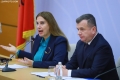 Minister of the Interior, Taulant Balla and Minister of Tourism and Environment, Mirela Kumbaro speaking during a press conference where they announced the signing of the agreement for the noise limit level for a given environment in the field of economic and social activities.