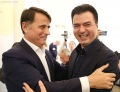 The chairman of the democratic party, Lulzim Basha and Ben Blushi on the second day of the book fair in Tirana, where he presented his book Komploti. In the 26th edition of the fair, held in the premises of the palace of congresses, 96 publishing houses were welcomed, while Ben Blushi, Blendi Fevziu and the former French player, Lilian Thuram, presented new books.