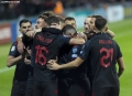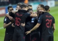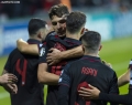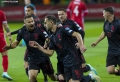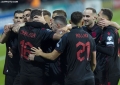 The players of the Albanian national football team celebrate scoring a goal during the football match Moldova vs Albania, 1-1, valid for the European 2024 qualifiers, played at the Zimbru Stadium stadium in Chisinau. With this draw, the Albanian national football team mathematically qualifies for the 2024 European Championship.