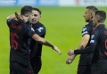 FOOTBALL MOLDOVA ALBANIA - The players of the Albanian national football team celebrate scoring a goal during the football match Moldova vs Albania, 1-1, valid for the European 2024 qualifiers, played at the Zimbru Stadium stadium in Chisinau. With this draw, the Albanian national football team mathematically qualifies for the 2024 European Championship.