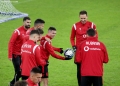 Players of the Albanian national football team during a training session at the Air Albania stadium before the match against the Faroe Islands, valid for the European 2024 qualifiers. After the draw with Moldova, Albania is mathematically qualified for the European 2024.