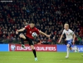 Mirlind Daku of Albania during an attempt at goal during the football match, Albania vs Faroe Islands, 0-0, played at the Air Albania stadium in Tirana. At the end of the game, Albania qualified first in the group with 15 points.