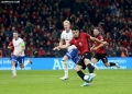 Kristjan Asllani of Albania in a duel with Brandur Olsen of the Faroe Islands during the football match, Albania vs Faroe Islands, 0-0, played at the Air Albania stadium in Tirana. At the end of the game, Albania qualified first in the group with 15 points.