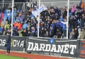 Kosovo fans singing with Kosovo flags during the football match, Kosovo vs Belarus, 0-1, valid for the European 2024 qualifiers, played at the Fadil Vokrri stadium in Pristina.