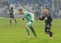 Kosovo's player Mergim Vojvoda during a duel during the football match, Kosovo vs Belarus, 0-1, valid for the European 2024 qualifiers, played at the Fadil Vokrri stadium in Pristina.