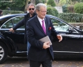 Former Prime Minister Sali Berisha getting out of the car to enter the premises of the headquarters of the parliament, for a meeting of the parliamentary group of the DP with the MPs who support Sali Berisha and Gazment Bardhi. After the meeting, the MPs confirmed that the agreement with Italy will be taken to the Constitutional Court, while they called for the opposition to unite.