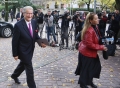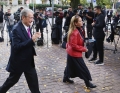 Former Prime Minister Sali Berisha and MP Albana Vokshi entering the premises of the headquarters of the parliament, for a meeting of the parliamentary group of the DP with the MPs who support Sali Berisha and Gazment Bardhi. After the meeting, the MPs confirmed that the agreement with Italy will be taken to the Constitutional Court, while they called for the opposition to unite.
