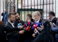 MP Gazment Bardhi speaking to journalists after he came out of the premises of the headquaters of the parliament, where a meeting of the DP parliamentary group was organized with the MPs who support Sali Berisha and Gazment Bardhi. After the meeting, the MPs confirmed that the agreement with Italy will be taken to the Constitutional Court, while they called for the opposition to unite.