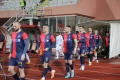 Players and referees enter the field before the football match, Vllaznia of Shkodra - Dinamo Tirana, 3-1, valid for the Albanian Super League, played at the Loro Borici stadium in Shkodra.