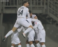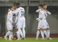 Dinamo players celebrate scoring a goal during the football match, Vllaznia of Shkodra - Dinamo Tirana, 3-1, valid for the Albanian Super League, played at the Loro Borici stadium in Shkodra.