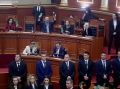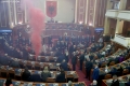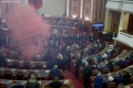 Majority MPs vote during a parliamentary session, where MP Edmond Spaho lit a smoker. The members of the Guard have prevented the entry of the former Prime Minister Sali Berisha and some DP MPs into the parliament hall, as they were excluded as a result of the tensions caused during the last parliamentary sessions.