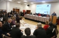 MP Ermonela Felaj, Ombudsman, Erinda Ballanca and the president of the Constitutional Court, Holta Zacaj during the Annual Conference of the ombudsman on the theme 75th Anniversary of the Universal Declaration for Human Rights and the 25th Anniversary of the Constitution of Albania: The Evolution of Human Rights in Albania.