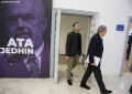 Former Prime Minister Sali Berisha and Belind Kellici entering a press conference at the DP headquarters. Berisha and Kellici spoke about the issue of the incinerator in Tirana, while they attacked Prime Minister Rama and the mayor of Tirana, Veliaj.