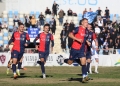 FOOTBALL TIRANA VLLAZNIA - Vllaznia players celebrate scoring a goal during the football match, Tirana vs Vllaznia, 0-1, valid for the Albanian Super League, played at the stadium Selman Stermasi in Tirana.