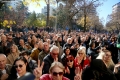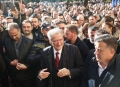 Former Prime Minister Sali Berisha meeting fans during a rally in front of the headquarters of the parliament. The rally was organized while the meeting of the council for the regulation and the mandates to examine the request of SPAK to remove Berisha's immunity was taking place, for the case of the former Partizani complex.