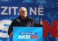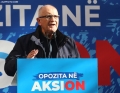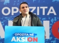 Belind Kellici speaking during a rally of former prime minister Sali Berisha in front of the headquarters of parliament. The rally was organized while the meeting of the council for the regulation and the mandates to examine the request of SPAK to remove Berisha's immunity was taking place, for the case of the former Partizani complex.