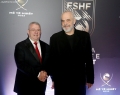 Andi Lila and Alban Xhihani before the AFF gala ceremony Best 2023, where awards were given for achievements in Albanian football for 2023, for men and women, organized in the premises of the Theater of Opera and Ballet.
