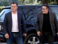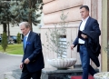 MPs Flamur Noka and Edi Paloka entering a meeting of the parliamentary group with the MPs who support the former prime minister Sali Berisha, after the decision of the council of mandates and the regulation for the removal of immunity for Berisha.