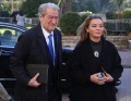 Former Prime Minister Sali Berisha and MP Albana Vokshi entering a meeting of the parliamentary group with the MPs who support the former prime minister Sali Berisha, after the decision of the council of mandates and the regulation for the removal of immunity for Berisha.