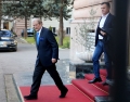 Former Prime Minister Sali Berisha entering a meeting of the parliamentary group with the MPs who support the former prime minister Sali Berisha, after the decision of the council of mandates and the regulation for the removal of immunity for Berisha.