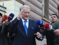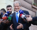 Former Prime Minister Sali Berisha speaking to journalists, after a meeting of the DP parliamentary group with MPs who support former Prime Minister Sali Berisha. The meeting was organized one day after the decision of the Council of Mandates and the regulation on the removal of immunity for Berisha. Berisha and Bardhi attacked Prime Minister Edi Rama and said that the actions in the parliament will continue.