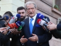 BARDHI AND BERISHA TALK AFTER THE MEETING - Former Prime Minister Sali Berisha entering the car after speaking to journalists, after a meeting of the DP parliamentary group with MPs who support former Prime Minister Sali Berisha. The meeting was organized one day after the decision of the Council of Mandates and the regulation on the removal of immunity for Berisha. Berisha and Bardhi attacked Prime Minister Edi Rama and said that the actions in the parliament will continue.