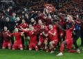 Partizani players celebrate after the football match, Partizani vs Egnatia, 1-0, valid for the Albanian Super Cup, played at the Air Albania stadium in Tirana.