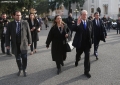 Former Prime Minister Sali Berisha and MPs Oerd Bylykbashi, Albana Vokshi and Flamur Noka outside the parliament premises. After the decision of the mandates and regulation council to remove Berisha's parliamentary immunity, a vote will be held in the parliament to ratify or not the decision.